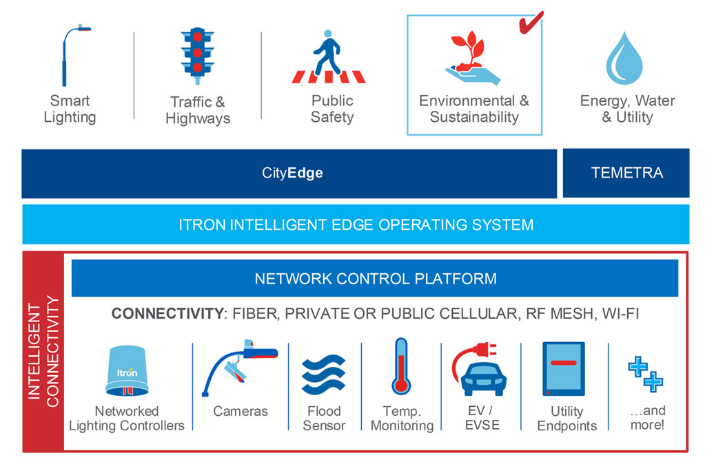 Political policies and economic realities are shifting in response to the effects of climate change and other sustainability imperatives. Increasing demand for electricity, transportation and other resources makes it more difficult for cities to meet environmental and social goals. Itron’s CityEdge provides data and applications needed to support carbon reduction roadmaps, economic growth, environmental protection and resiliency plans.