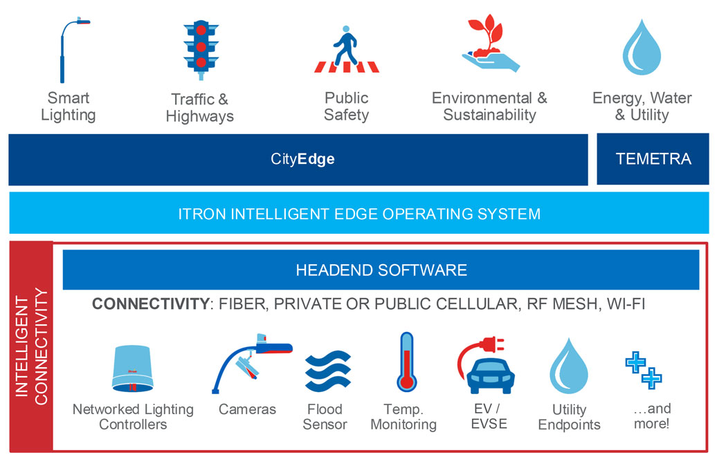 Itron CityEdge propose une gamme de solutions d’éclairage connectées qui sont à la base d’autres cas d’utilisation des villes intelligentes, aidant les villes à améliorer leurs services, à réduire leur consommation d’énergie et à atteindre leurs objectifs de durabilité.